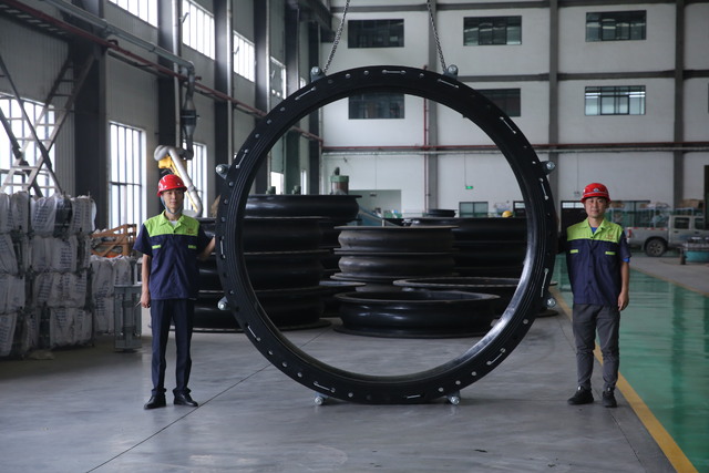 該產品主要利用橡膠的獨特性能,如高彈性、高氣密性,耐介質性及耐輻射性,采用高強度,冷熱穩定性強的聚酯簾布斜交與之復合后,經高壓,高溫模壓交聯而成,內部致密度高,能承受較高壓力,彈性變形效果優異,產品結構設計端面弧高,曲線長,具有較大的多項位移功能,特別使用于地質條件復雜,沉降幅度大和管道運行中冷熱變化頻繁易造成管道損傷的場所,利用橡膠的彈性滑動位移和變形機械力的傳熱散逸功能有效的消除泵,閥及管道自身的位移物理破壞。因橡膠屬不良傳導材料,所以它是一種良好的降低振動和噪聲傳遞的產品,該產品設計內壁光滑,經實際測試,對介質的流速,流量無任何影響,并且不生銹,基本可以免除有效運行期內的維修。